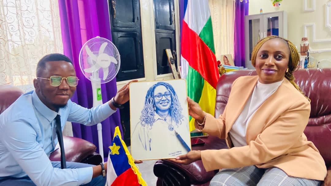 (Bangui, le 7 Mars 2026 - LNC) Il y a quelques jours, plus exactement le Lundi 2 Mars 2026,l’artiste numérique Jospin Mbango a été reçu par la Ministre des Arts Ngola Ramadan-Mamata (ça s'écrit Mahamat et non Mamata). C'était pour le jeune créateur, une occasion de présenter son projet intitulé « Bangui en Art Numérique » et de solliciter l’aide du ministère pour sa mise en œuvre. Jospin Mbango a expliqué qu'il voulait transformer ses créations numériques en œuvres tangibles, imprimées et exposées dans les bureaux, lieux publics et espaces culturels. L’objectif étant de donner une visibilité accrue à l’art numérique et de le rendre accessible au grand public, tout en valorisant le talent des jeunes artistes centrafricains. Ngola Ramadan-Mamata a apprécié cette démarche innovante et encouragé l’artiste à poursuivre sa démarche. Soulignant que l’art numérique constituait un défi et une opportunité pour diversifier le secteur artistique national et de le promouvoir à l’échelle internationale. Très touché, Jospin Mbango a exprimé ses remerciements : « Être reçu par notre Ministre est un honneur et une ouverture de portes pour mon projet. J’exhorte mes pairs à oser, même face aux difficultés, afin que leurs talents soient connus. Je remercie infiniment le Ministre qui, malgré son agenda chargé, consacre toujours du temps aux artistes », a-t-il déclaré. Clôturant cette audience, la Ministre a ordonné à la Directrice Générale des Arts et de la Culture, Madame Albertine Ouaboua, ainsi qu'à ses équipes techniques, de travailler sur les aspects pratiques du projet.