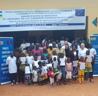 (Boali le 19 Février 2026 - LNC) C'est Mardi 17 Février, que la ville de Boali a remis gratuitement plus de 4000 actes de naissance à des enfants âgés de 0 à 17 ans. Cette initiative a été rendue possible grâce à une collaboration étroite entre le ministère de l’Administration du Territoire et surtout Civipol, dans le cadre du projet européen d’appui à la modernisation, à la sécurité et à l’accessibilité du système d’état civil en Centrafrique. Il y a bien sûr eu une cérémonie officielle qui a donc, permis aux familles concernées de recevoir ce document essentiel, garant de l’identité juridique de chaque enfant. Le Gouverneur de la région du Plateau, Joseph Dokombo, y est allé de son laïus en soulignant l’importance de l’acte de naissance : << L’acte de naissance est le premier document qui ouvre toutes les portes à une personne dès sa naissance. En effet, muni de ce document, une personne obtient l’accès à tous les autres documents civils. Un enfant sans acte de naissance est donc un enfant condamné dès sa naissance, condamné à ne pas appartenir à une famille, à une communauté, à un pays. Il devient de fait un fantôme civil.>>, a-t-il déclaré. Document très important pour accéder aux droits fondamentaux tels que l’éducation, les soins de santé et la protection sociale, cet acte vise à régulariser la situation de nombreux enfants qui, pour diverses raisons, n’ont pas pu obtenir leur acte de naissance dans les délais réglementaires. Cette initiative a été saluée par Camir Youskou, premier vice-président de la délégation spéciale de la ville de Boali : << Je suis très content, car vous savez, si on vous remet un acte de naissance gratuitement, c’est à saluer, et je remercie le gouvernement et Civipol pour cette initiative qui permet de donner un acte de naissance aux enfants qui n’en avaient pas.>>, a-t-il dit. Solange Mokonomboka Makamba, sous-préfète de Boali, en a profité pour inviter les parents à envoyer massivement leurs enfants pour obtenir ce document : <<Pour cette seconde phase, je demande aux parents de venir massivement avec leurs enfants afin qu’ils puissent obtenir leurs actes de naissance.>>, a-t-elle lancé. Ce programme, soutenu et financé par l’Union Européenne, représente un effort continu pour moderniser l’administration publique en RCA, en particulier dans les zones rurales où l’accès aux services administratifs reste un défi majeur.