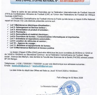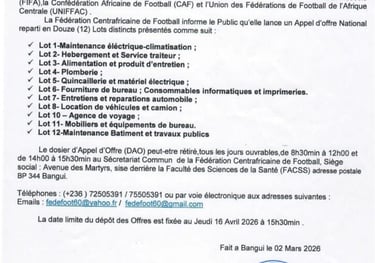 Par Fanta DEMBA l LAMINE MEDIA (Bangui, le 3 Mars 2026 - LNC) C'est fait, le >>>>>>>>>>>>>>