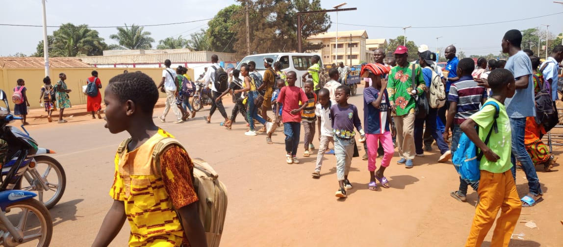 (Bangui le 13 Février 2026 - LNC) Autant le dire de go! la sécurité des enfants fréquentant des établissements scolaires situés aux abords des routes demeure alarmante. Entre manque de protection et risque d’accidents, le quotidien des enfants est marqué par une insécurité persistante. Du coup, certains parents sont obligés d'accompagner leurs enfants pour les déposer à l’école. Devant cette situation, parents, riverains et élèves lancent un appel pressant au gouvernement de voler au secours des enfants afin de garantir non seulement leur sécurité, mais aussi leur droit à la vie. En fait, la devanture de plusieurs établissements scolaires publics et privés construits aux abords des routes dans la capitale connaît, de jour en jour, la présence d’enfants attendant les voitures, ltaxis, bus et motos pour traverser afin de se rendre à l’école ou chez eux. Cette insécurité, marquée par l’absence de marquage sur le passage piéton, plonge le quotidien de ces enfants, des riverains et des parents dans l’angoisse. Cela provoque des inquiétudes chez certains parents quant au danger auquel courent leurs enfants. Bavon Alladoum, parent d’élève, témoigne : « Nous savons que les dangers auxquels sont exposés nos enfants lors de la traversée de la route sont vraiment grands. Surtout avec les motos qui roulent vite, les conducteurs ne respectent pas le droit de ces enfants ; au lieu de ralentir, ils préfèrent passer. » a-t-il confié. Bien qu'accompagnant leurs enfants à l'école, certains parents demeurent toujours inquiets. Roger, un autre parent d’élève : « Je ne peux pas laisser mon enfant à la maison inutilement, c’est pourquoi j’ai inscrit mon enfant à l’école Saint François. Mais comme il réside loin, et de peur qu’il lui arrive quelque chose, je suis obligé de l’accompagner et de venir le prendre à la fin du cours. » a-t-il expliqué. Très préoccupé par cette situation déplorable, Aguingo Pindao, secrétaire général du groupement des menuisiers Centrafrique Meuble, installé à côté du meuble, affirme avoir été témoin de plus de dix cas d’accidents impliquant des enfants ou des élèves devant le lycée Miskine : « Depuis le début de cette année académique, j’ai été témoin de plus de dix cas d’accidents, dont les victimes sont des élèves de l’école primaire. Dans ces cas d’accidents, certaines victimes ont eu des fractures, d’autres ont vu leurs dents déplacées. C’est ce qui m’a motivé à faire un panneau sur lequel il est mentionné « STOP » afin de les aider à traverser toutes les 12 heures. » a-t-il déclaré. Ei ul lance aussi un appel au gouvernement pour veiller à la sécurité des enfants fréquentant les établissements implantés aux bords des avenues : « Je demande au gouvernement de veiller sur la sécurité de ces enfants, car ils courent un grand danger au quotidien. Sans le marquage sur le passage piéton, la situation s’empire de jour en jour. Pour les protéger, le gouvernement peut envoyer des policiers ou des gendarmes aux axes où ces enfants sont souvent exposés. » a-t-il martelé.