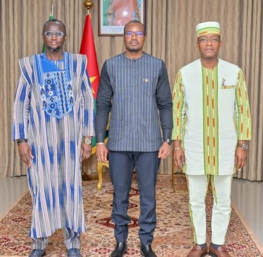 (Bangui, le 16 Mars 2026 - LNC) Ce Lundi 16 Mars 2026, le ministre Centrafricain des Petites et Moyennes Entreprises et de la Promotion du secteur privé a été reçu en audience par le Premier ministre Burkinabé Rimtalba Jean Emmanuel Ouédraogo, présenté au Chef du Gouvernement par son homologue, Serge Gnaniodem PODA. Les échanges ont porté sur le renforcement de la coopération entre les deux pays, notamment dans le domaine de l’artisanat. Comme la République Centrafricaine envisage de créer une Chambre des métiers artisanaux, Bangui a choisi de s’inspirer du modèle Burkinabè, comme son expérience est reconnue dans ce domaine. Selon le ministre Centrafricain Jean-Paul Ngate-Robard : « Les indicateurs que nous avons retenus pour identifier le pays-modèle nous ont permis d’apprécier les résultats mesurables obtenus par le Burkina Faso en termes de création d’emplois et d’entreprises, de réduction du taux de chômage, ainsi que d’autres incidences macroéconomiques. Étant donné que le Burkina Faso a une longueur d’avance dans ce domaine, nous sollicitons son expertise ». Le Premier ministre a salué ce choix et réaffirmé la disponibilité de son pays à accompagner la République Centrafricaine dans l’élaboration de ses instruments. À l’issue de l’audience, le ministre Centrafricain s’est dit très satisfait de la qualité des échanges. « Nous ressortons satisfaits de cette audience. Le Premier ministre a exprimé l’engagement du Président du Faso, le Capitaine Ibrahim Traoré, qui prône une coopération interafricaine fondée sur une construction commune de notre continent. Il a également réaffirmé la volonté du Burkina Faso de renforcer la coopération bilatérale avec la République centrafricaine, en vue de faciliter la libre circulation entre nos deux États ».